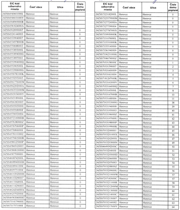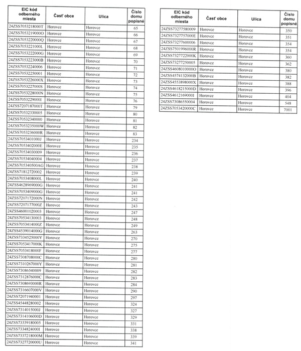 Zoznam odberných miest, ktorých sa odstávky dotýka je zverejnený na www.horovce.eu